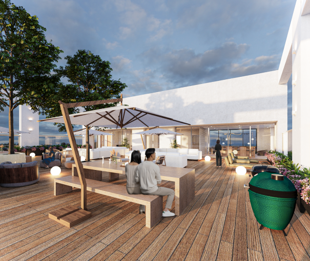 Todas las imágenes y diseños reflejados en este documento son representaciones conceptuales del Proyecto Inmobiliario al cual se hace referencia, siendo que en dichas imágenes y diseños fueron realizados con base en los planos de desarrollo preliminares y, por lo tanto están sujetas a cambios, sin previo aviso. A mayor abundamiento, se advierte que en ningún momento se deberá considerar el presente documento como una propuesta definitiva del proyecto por parte del Desarrollador, toda vez que se pueden modificar los planes, imágenes, diseños, conceptos, tamaños de unidades privativas, tipos de materiales utilizados (de construcción y de acabados), instalaciones eléctricas, o cualquier otra cuestión del proyecto inmobiliario que requiera modificarse, al criterio exclusivo del Desarrollador, durante la operación y desarrollo del Proyecto Inmobiliario referido.